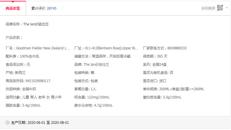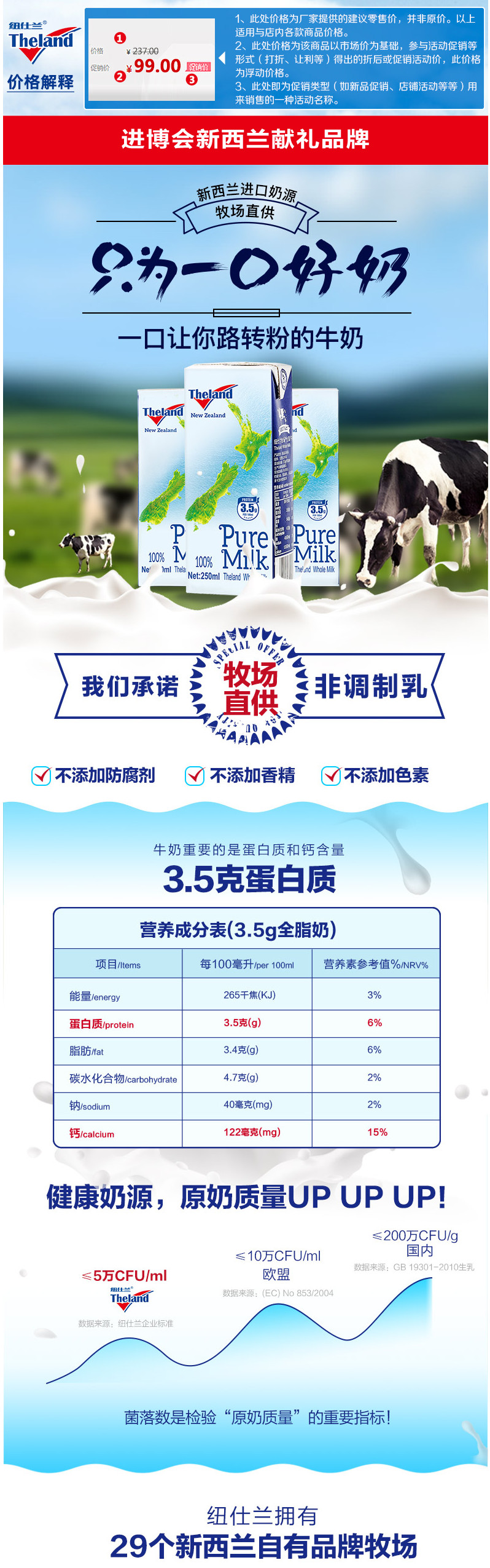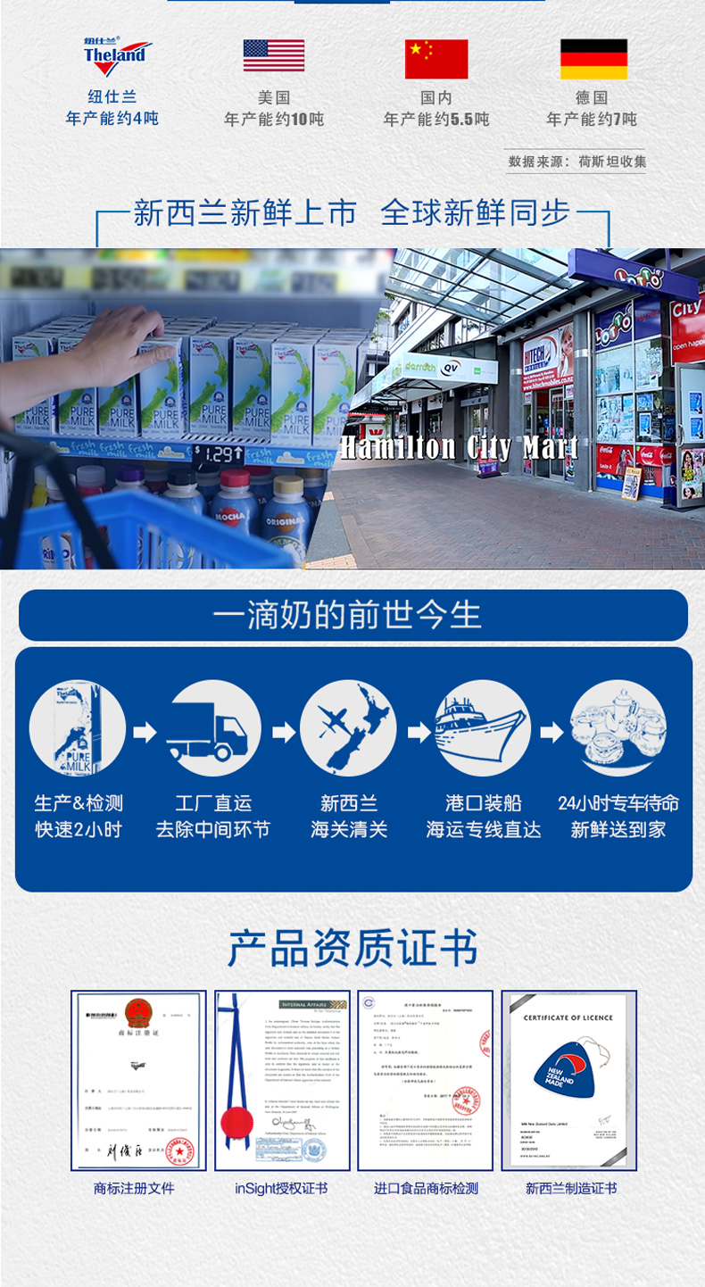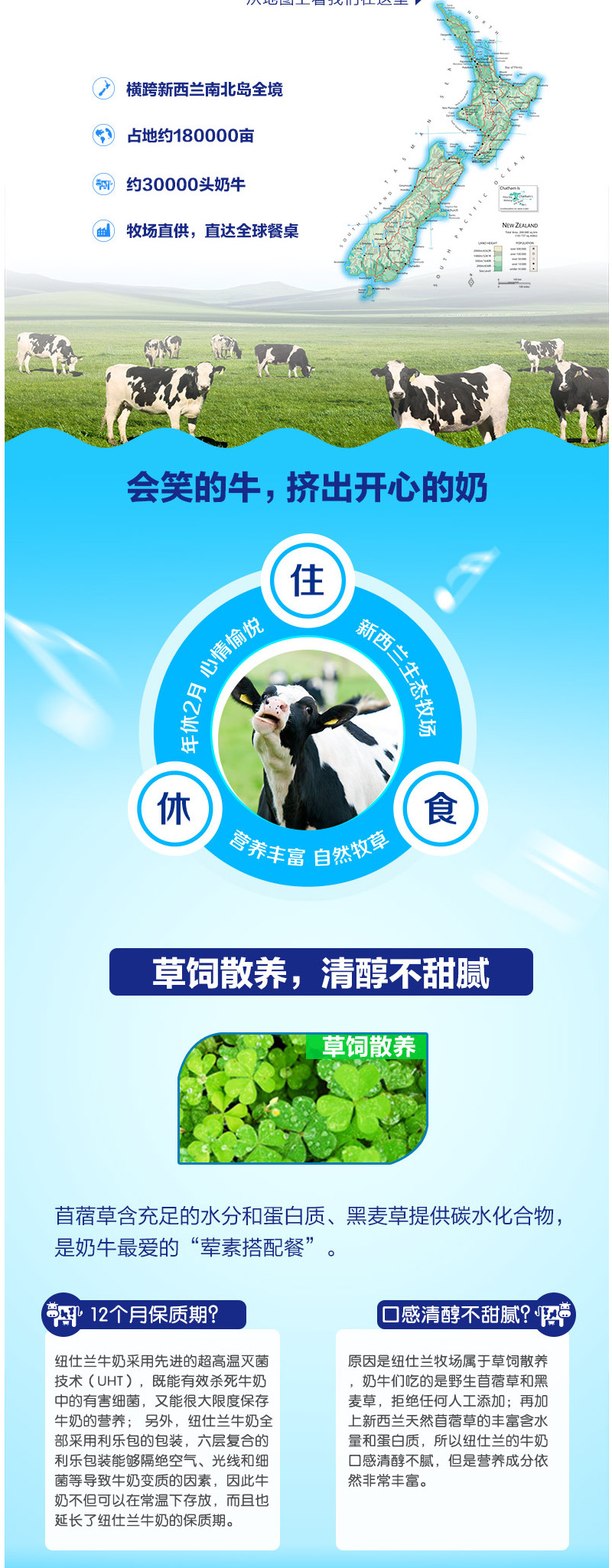 新西兰进口牛奶纽仕兰高钙低脂纯牛奶250ml*24盒*1箱