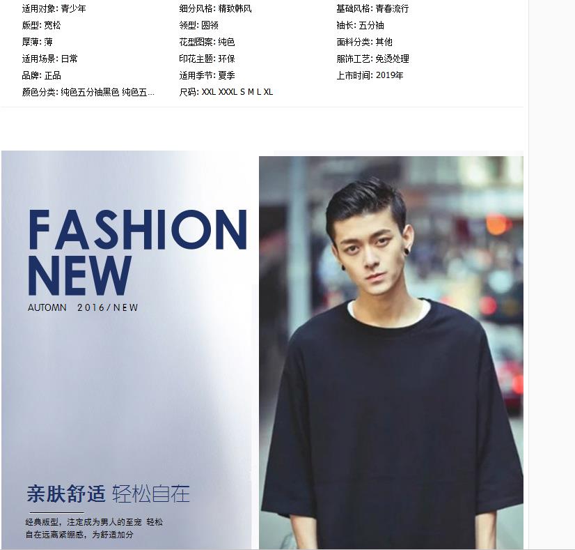 2019夏男中袖t恤纯色圆领韩版男女装五分袖个性潮流宽松男装批发