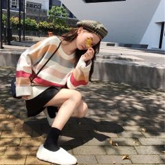 2020秋冬新款针织衫慵懒风外穿彩虹条套头毛衣女宽松韩版洋气女