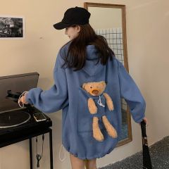 秋冬韩版2020新款情侣闺蜜装加绒加厚宽松中长款小熊长袖卫衣女装