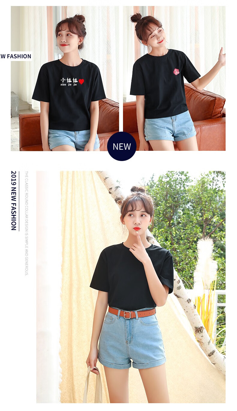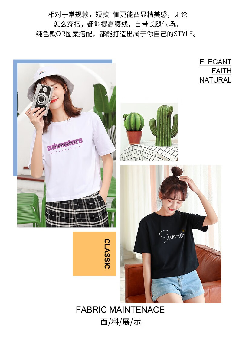 商品名称:短款t恤女2020新款小个子韩版ins潮半袖宽松纯色短袖純棉高腰上衣 白色(夏至黑) 女L【30天内印花脱落包换新】