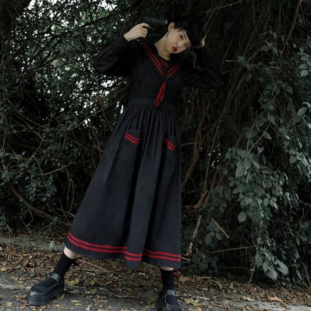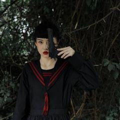 颜色分类:红织带海军领黑裙(现货) ,红织带海军领黑裙(预售)