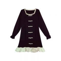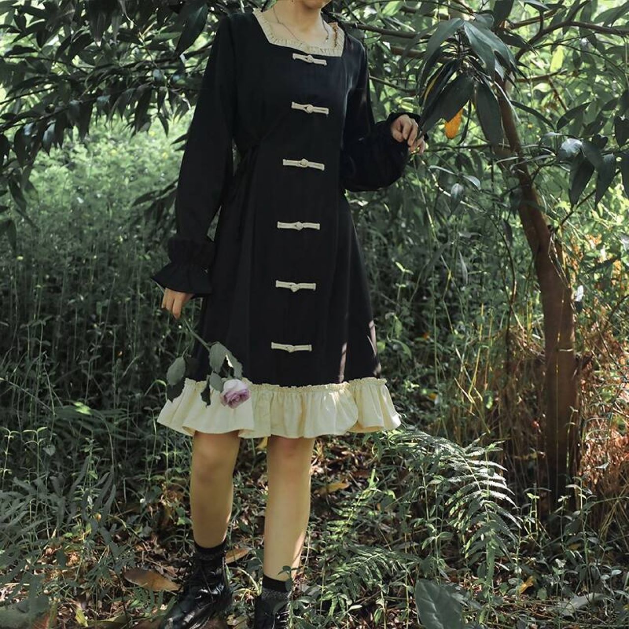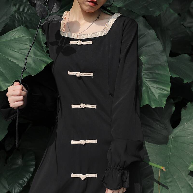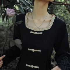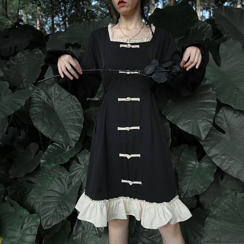 颜色分类:黑拼杏木耳方领连衣裙(现货) ,黑拼杏木耳方领连衣裙(预售)