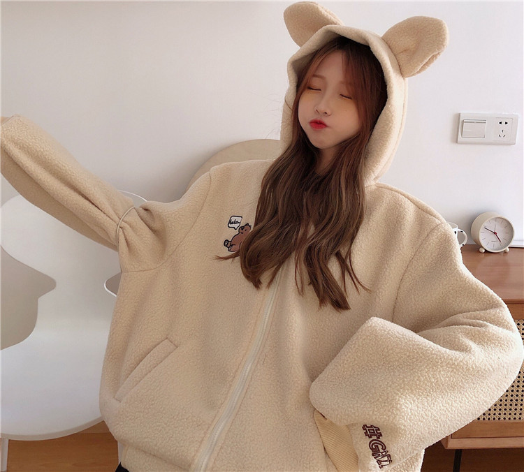 2020秋冬季女装新款上衣潮流可爱连帽长袖羊羔绒加绒加厚外套卫衣