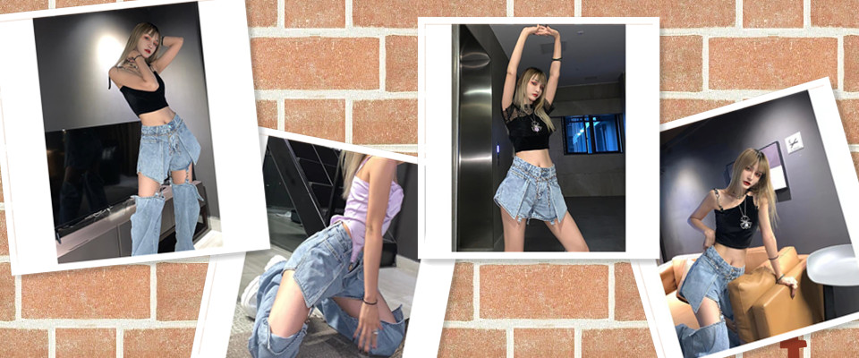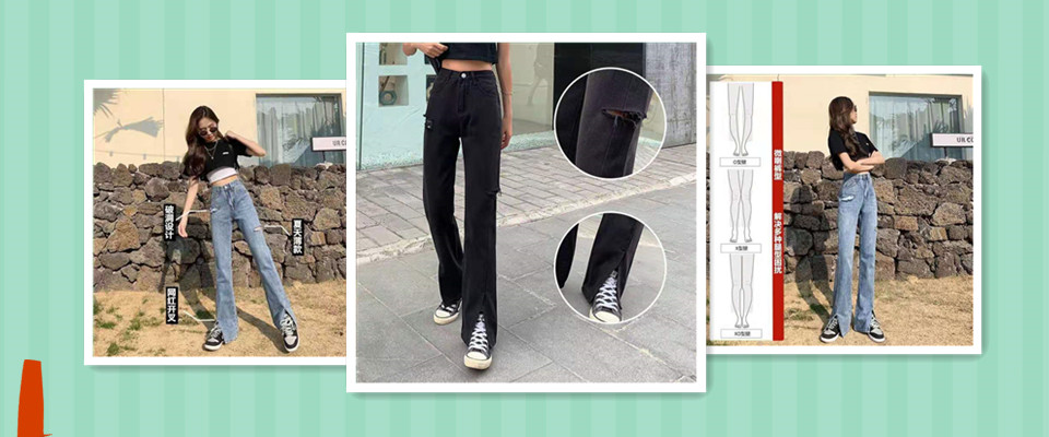 破洞牛仔裤女高腰