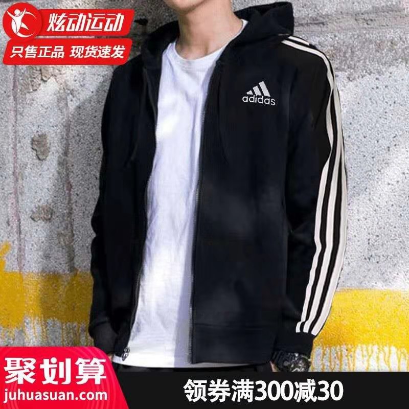 Adidas阿迪达斯外套男春季官网旗舰针织夹克连帽上衣运动服GK9032