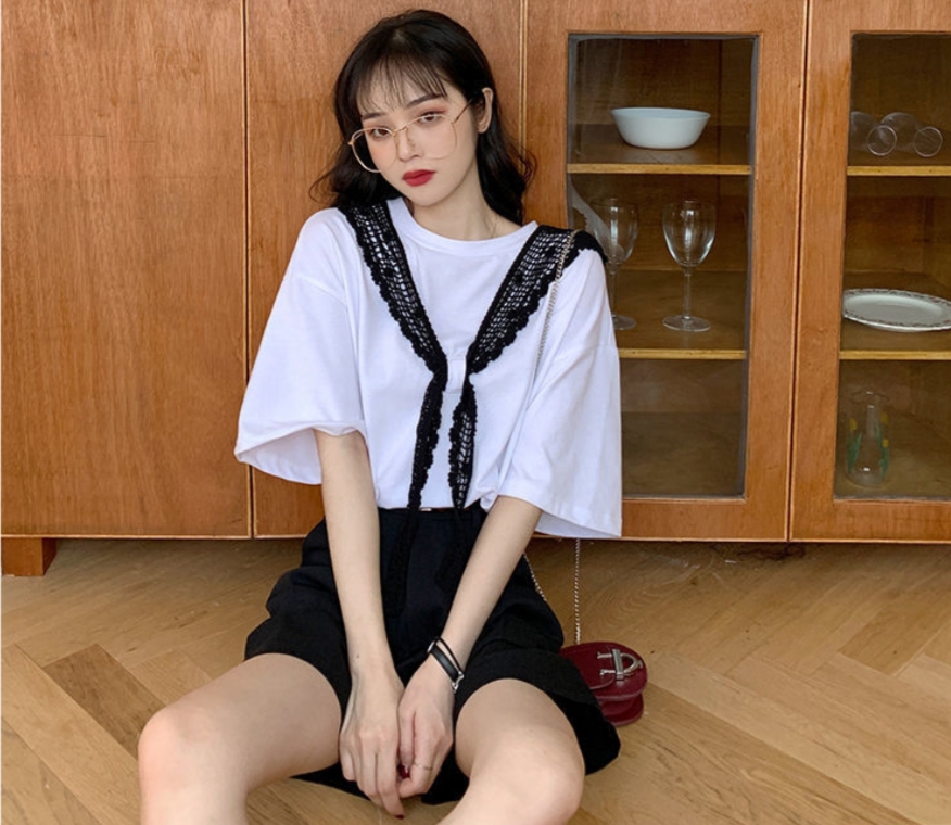 蓝色t恤女短新款