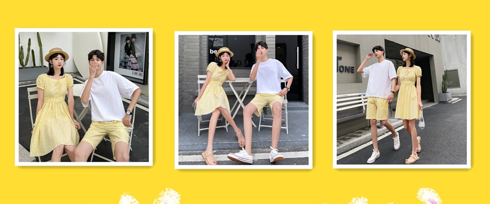夏季新款情侣套装男T恤短裤女碎花连衣裙