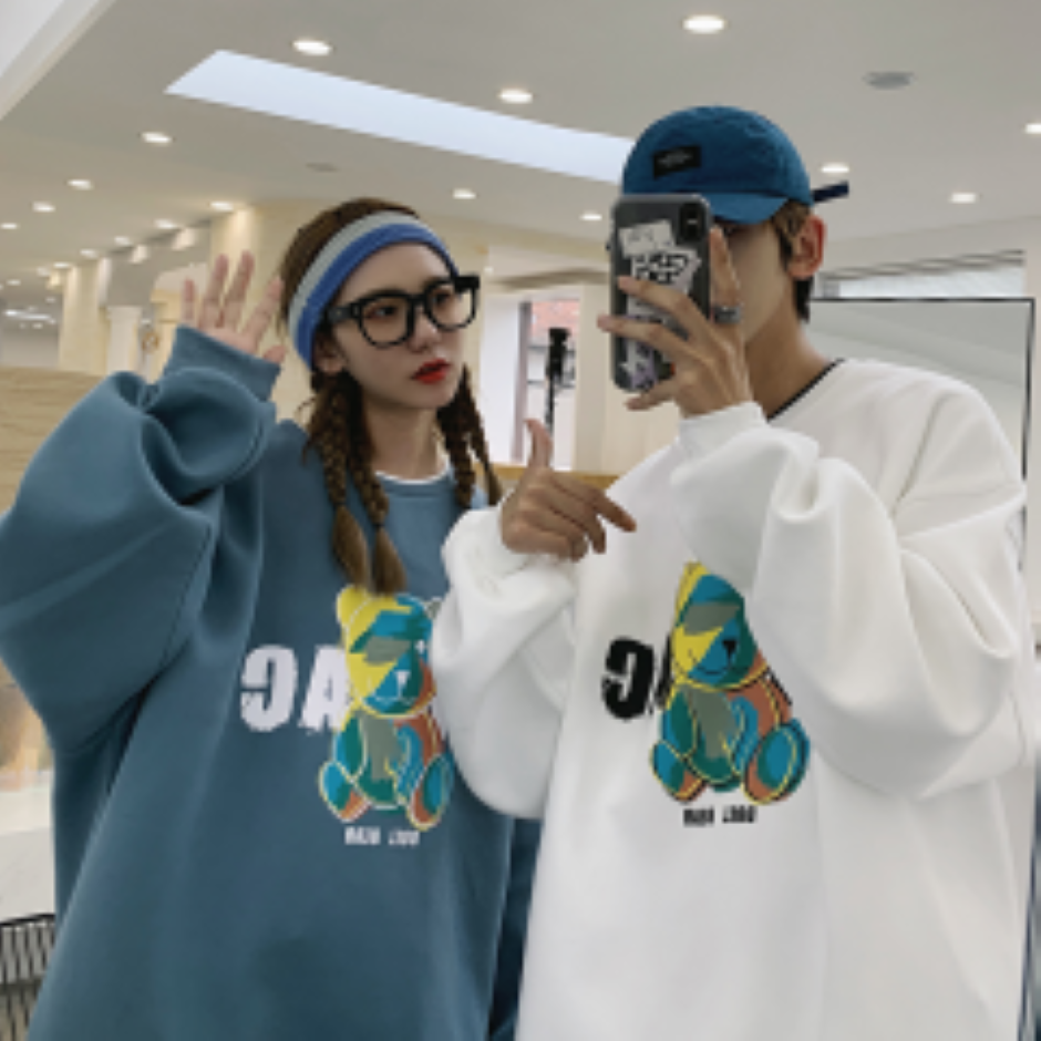 小众设计感情侣装秋装炸街卡通宽松ins女卫衣学生班服roora外套潮 均码