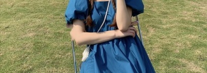 泡泡袖格子裙子