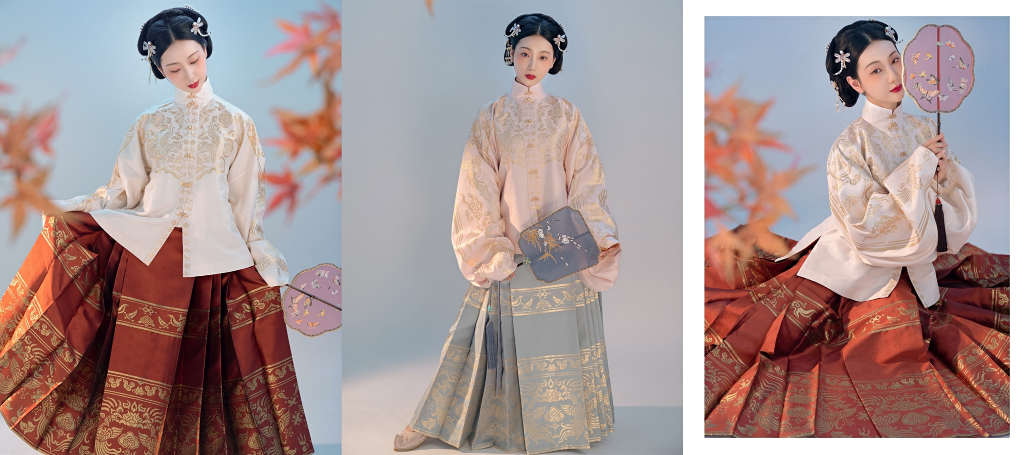 对襟短衫褶裙三件套