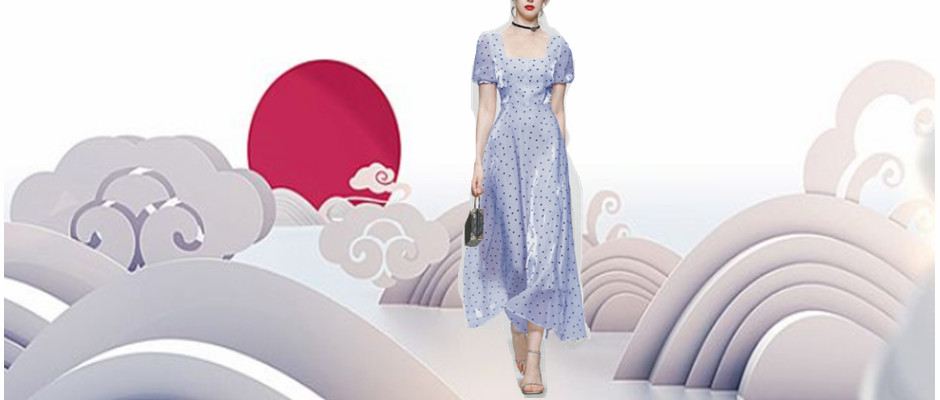 法式波点长裙