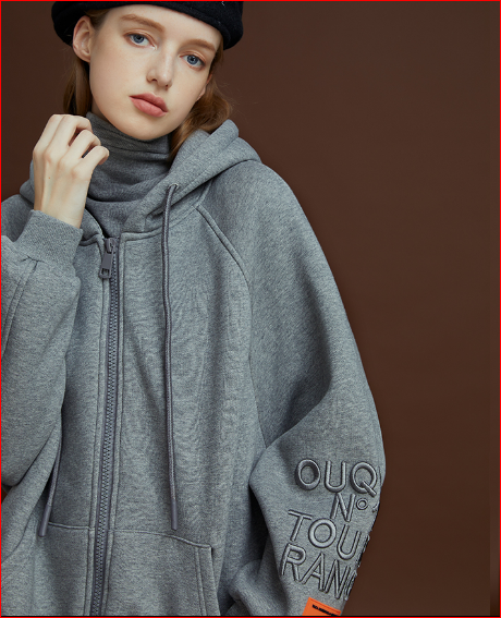 ONEDU外套女2020新款秋冬开衫加绒韩版宽松卫衣连帽拉链休闲上衣