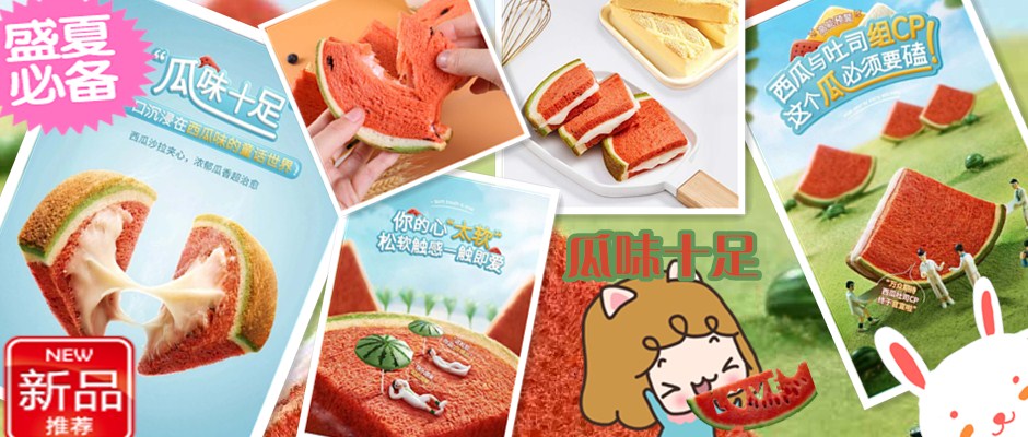 a1西瓜吐司面包早餐网红零食 瓜味十足 你的心“太软”松软触感一触即爱。