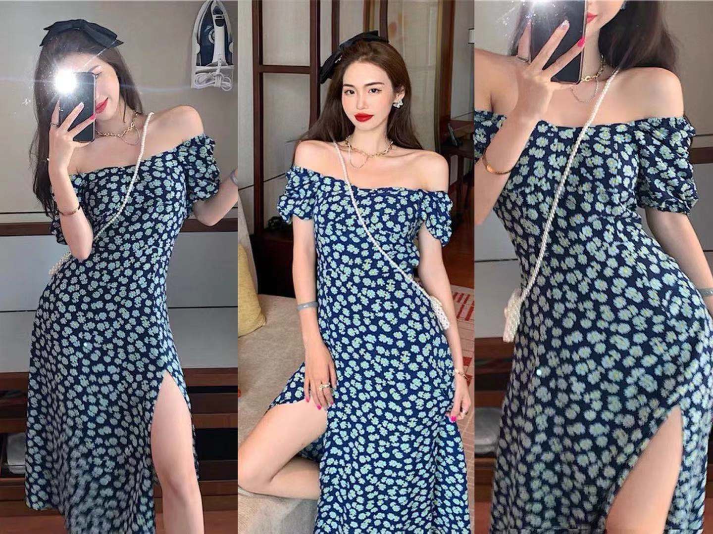 一字肩连衣裙