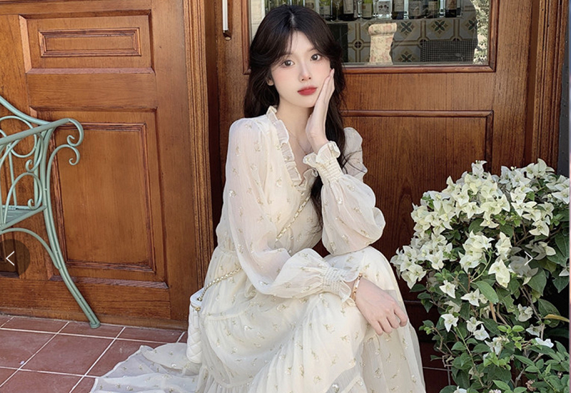 杏色长裙