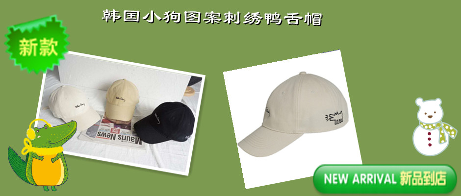 韩国小狗图案刺绣鸭舌帽男女日系新款简约字母百搭休闲防晒棒球帽