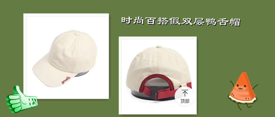 纯棉鸭舌帽,吸汗舒适,外观简约时尚,韩版百搭,假双层设计,个性大方。