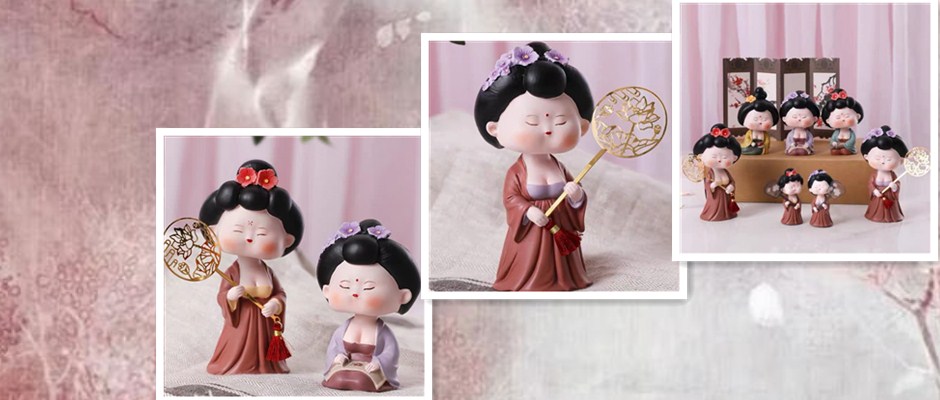 唐仕女宫廷摆件系列古风娃娃创意中国风工艺品小家居装饰摇头礼物,既是摆件,还是摇头车载,手工彩绘,精美包装。