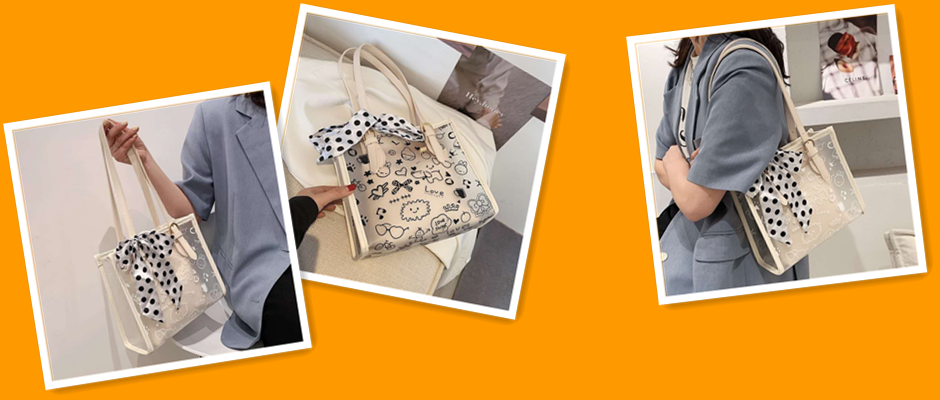 大容量包包女夏2021新款潮时尚透明果冻包涂鸦小众丝巾单肩小方包 图片色