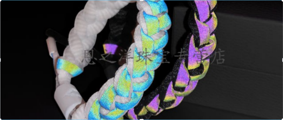 仿小狮子同款手链 抖音网红全息反光情侣款变色手环男女学生编织手绳 65#【全息反光黑色1条 无盒子】