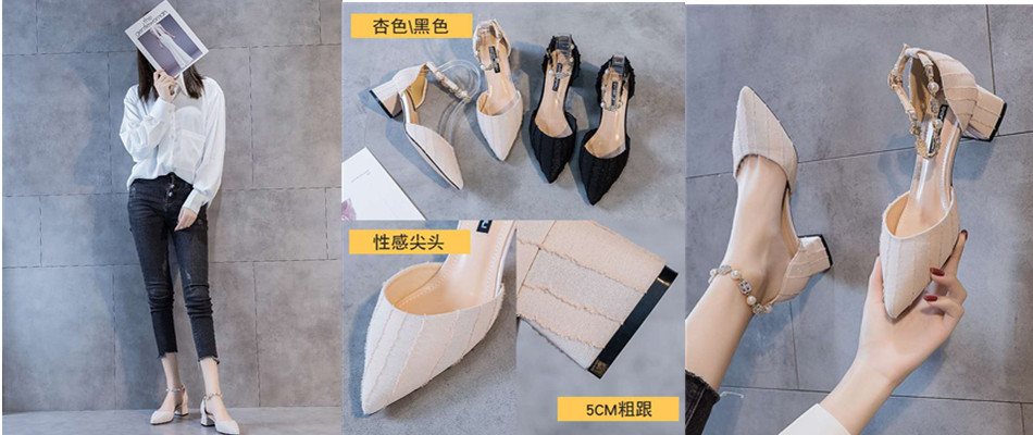 尖头粗跟高跟鞋