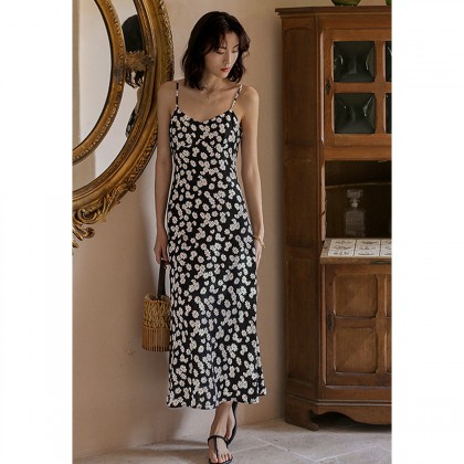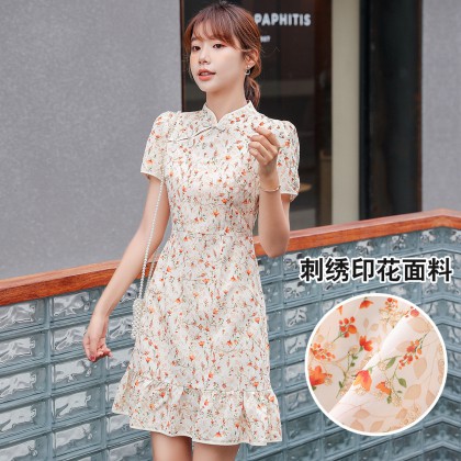 2021新款夏季油画气质小雏菊泡泡袖连衣裙森系显瘦中长款裙子仙女 M