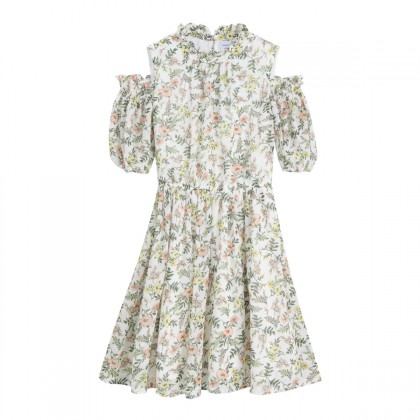 【夏季新款2021年】V领碎花荷叶边不规则鱼尾连衣裙女 S