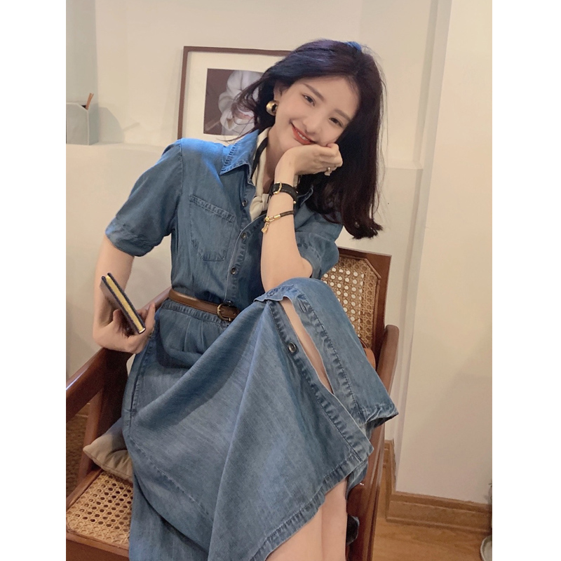 复古衬衫连衣裙女2021夏季新款设计感收腰小个子气质减龄鱼尾裙