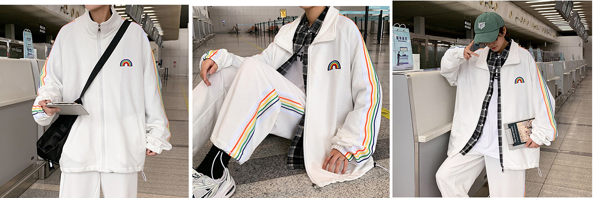 刺绣开衫卫衣男套装秋季新款潮流宽松大码休闲运动套装男ins高街潮牌两件套