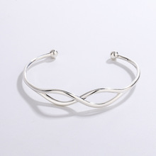 韩版S925银手镯极简ins几何线条交织交叉手环女气质小众百搭手环