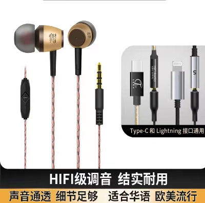 有线入耳式耳机,高质量音质,HIFI级专业调音。