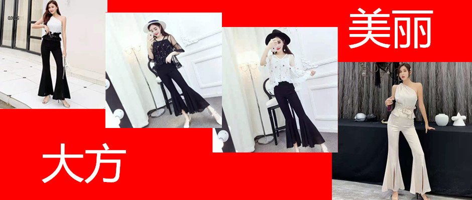 蔚缇2017夏季小花网纱+吊带+喇叭裤三件套女限时促销