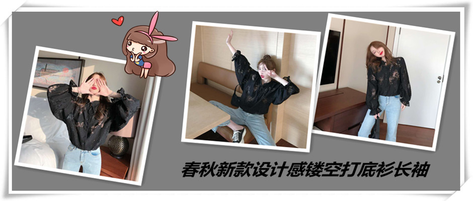 春秋新款设计感镂空打底衫长袖百搭 T恤 黑色 M