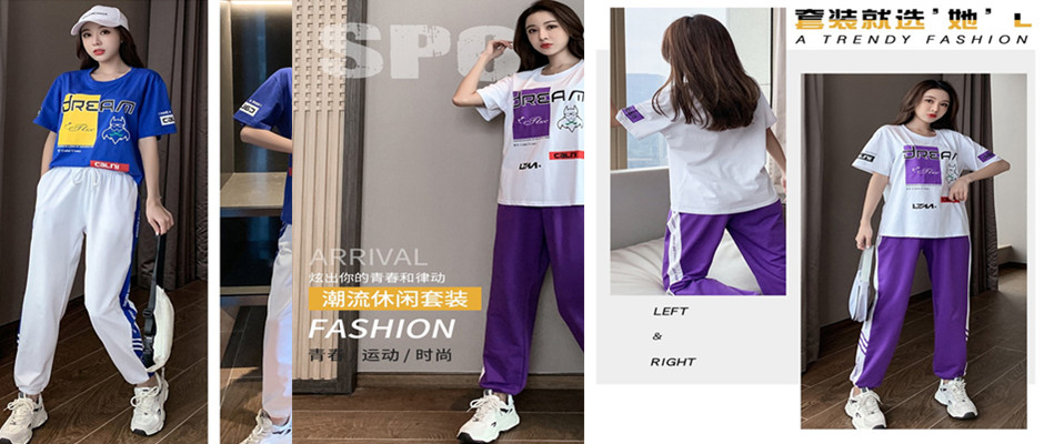 运动服套装女夏季新款时尚潮牌洋气短袖T恤女休闲九分裤