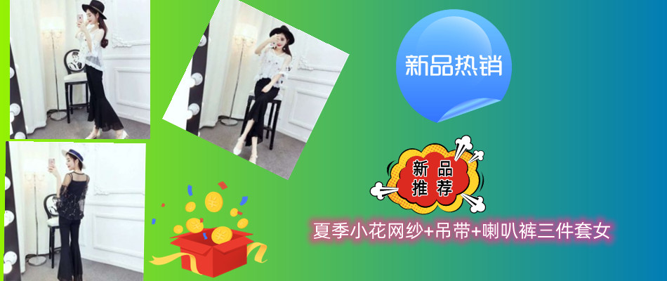 夏季小花网纱+吊带+喇叭裤三件套女