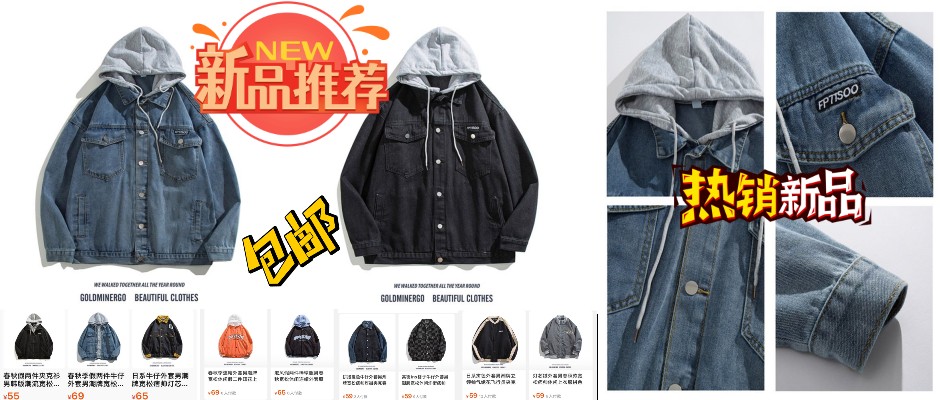 假二件牛仔外套男春秋新款宽松百搭连帽夹克男潮流百搭休闲上衣服 蓝色 S