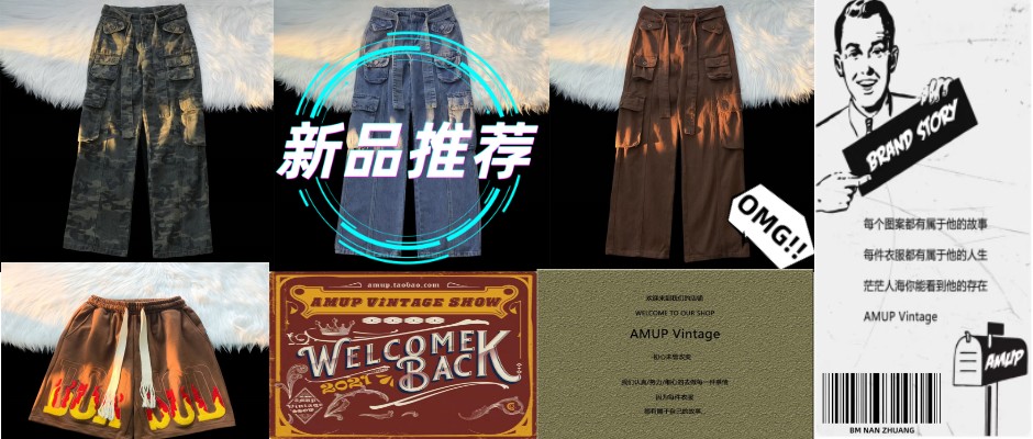 AMUP Vintage美式街头小众设计复古立体多口袋工装休闲牛仔长裤 工装裤 迷彩色 M
