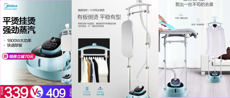 美的家用平烫挂烫双杆蒸汽挂烫机电熨斗熨YGD20D7