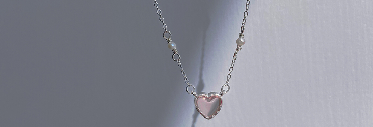DZONE纯银项链女2022年夏季新款爱心粉钻珍珠锁骨链轻奢小众设计