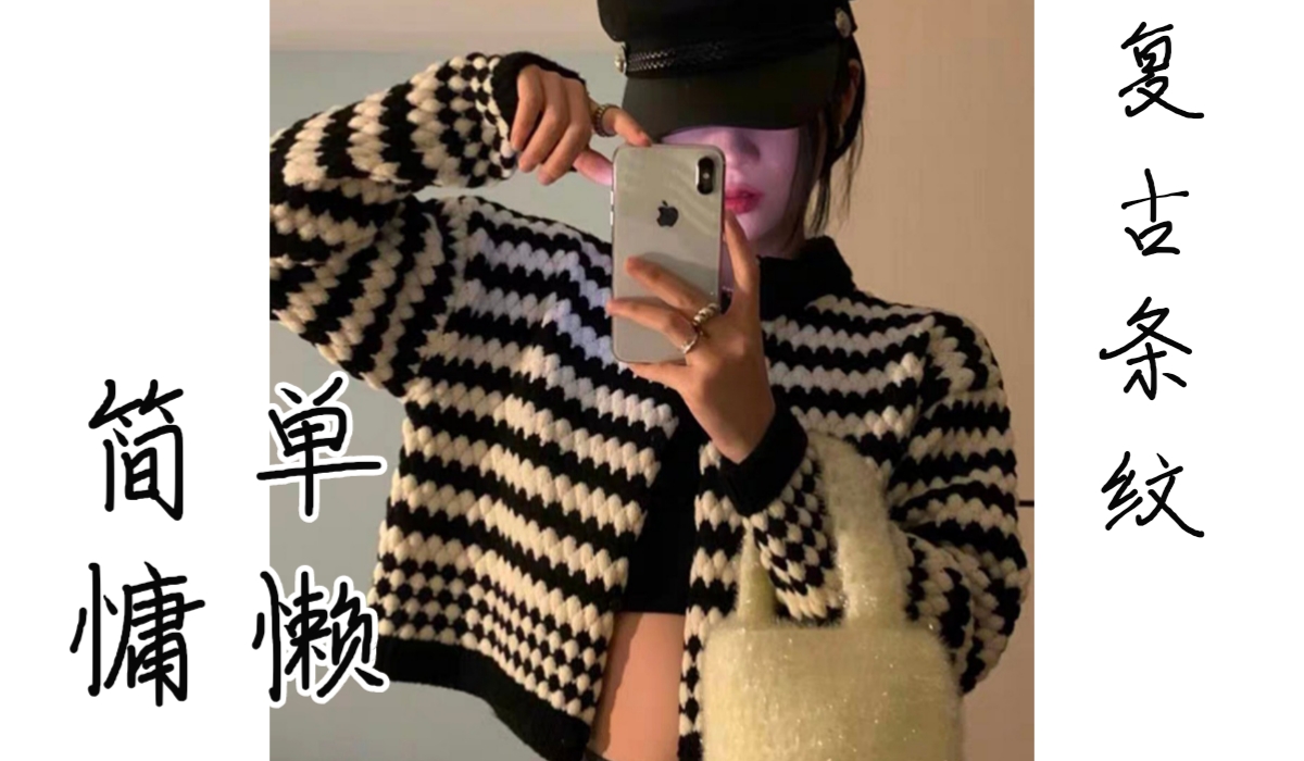 复古撞色慵懒风条纹毛衣外套女秋季2023新款网红chic针织短款开衫