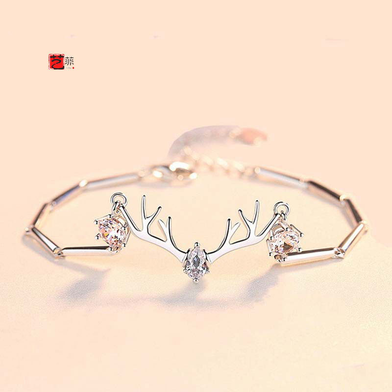 S925纯银一路有你手链小麋鹿角手饰品简约森系女锁骨手饰手链直供