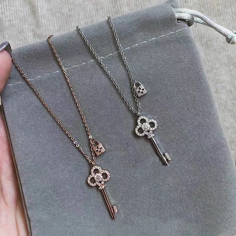 s925纯银精工钥匙项链女韩版气质个性镂空镶钻锁头吊坠锁骨链饰品