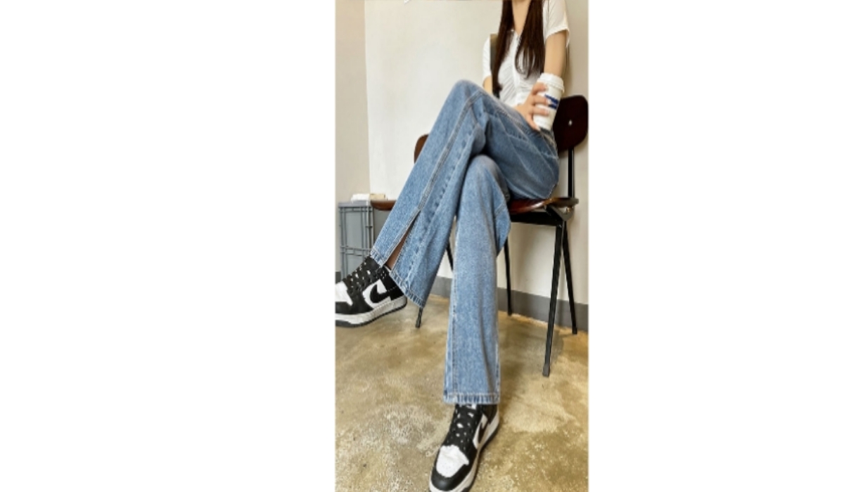 微喇直筒牛仔裤