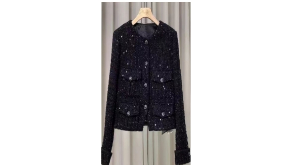 春夏新款名媛风气质优雅休闲时尚百搭显瘦圆领黑色编织呢料短外套