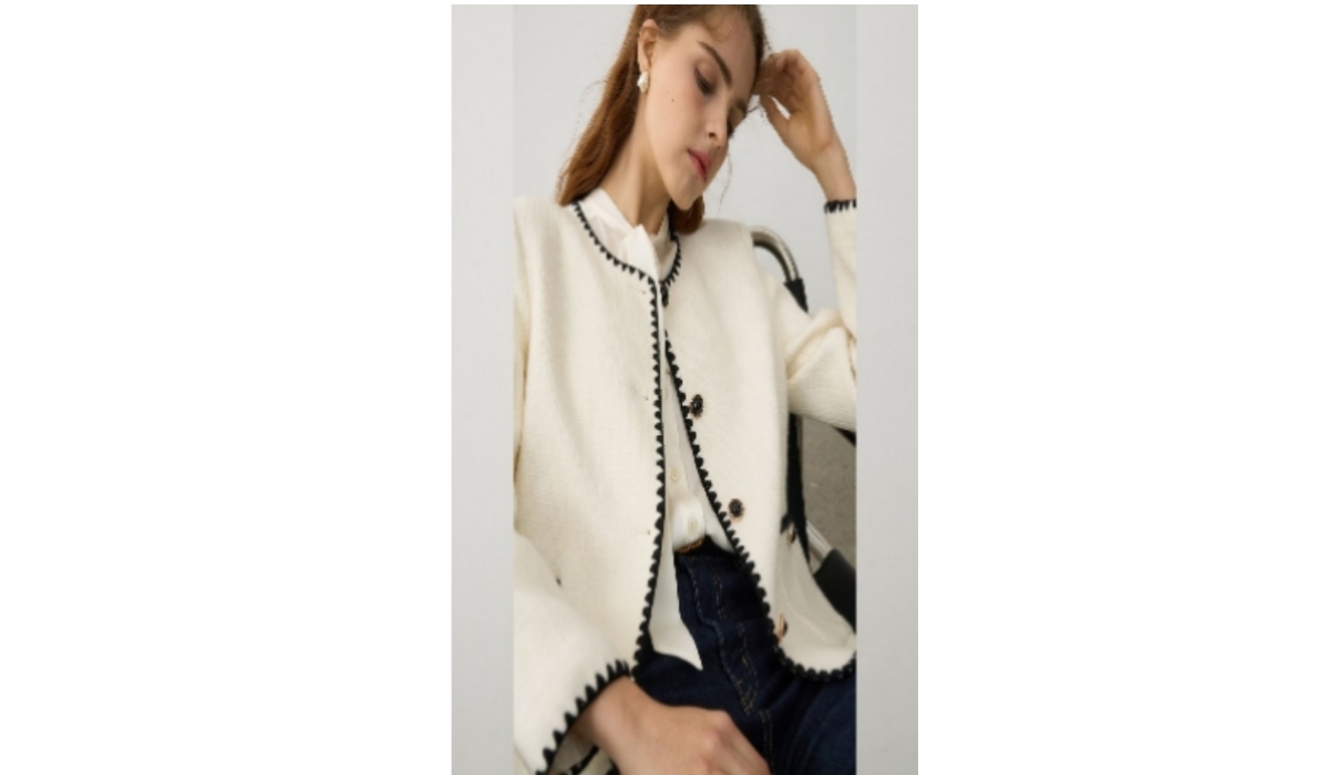 23春季经典小香黑白撞色圆领绣花赫本风羊毛短外套女