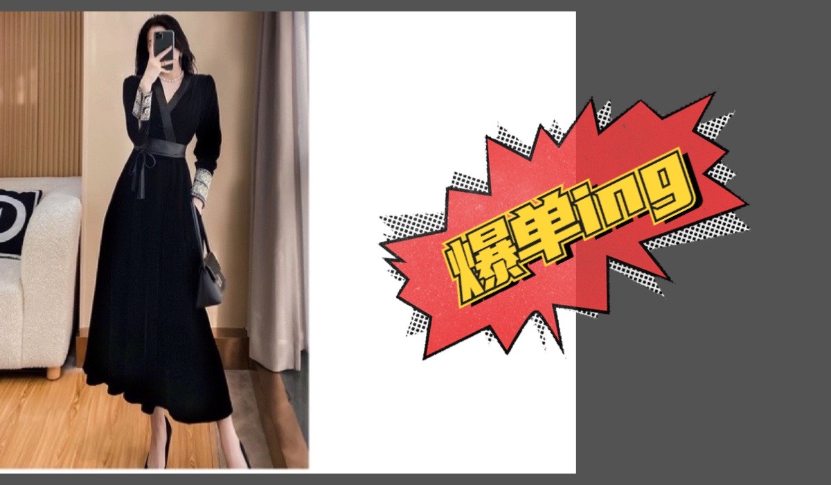2023年新款女装丝绒连衣裙春季通勤韩版收腰气质名媛百搭黑色裙子