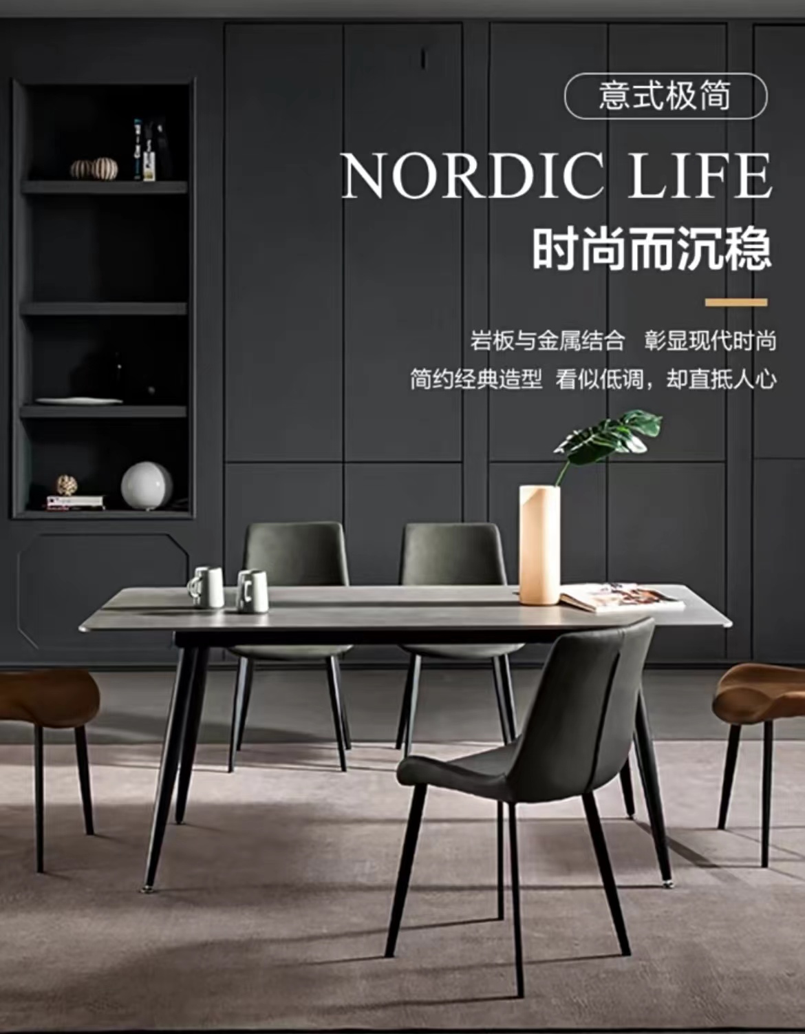 意式岩板餐桌简约现代小户型家用长方形灰色哑光磨砂桌子椅子组合