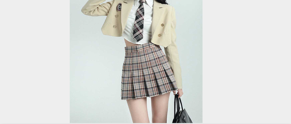 专柜学院风西装套装女春装2023年新款短款外套格纹半裙三件套潮