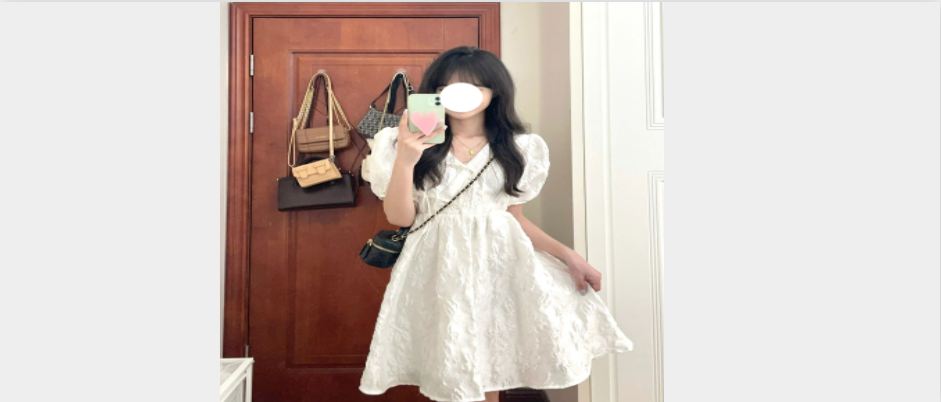 气质法式收腰连衣裙女夏季2023新款高级感v领泡泡袖白色仙女裙子